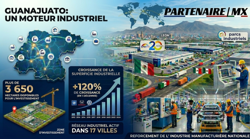 Avec plus de 3 650 hectares disponibles pour l’investissement, un réseau industriel actif dans 17 villes et une croissance de plus de 120 % de la superficie industrielle en un peu plus d’une décennie, Guanajuato réaffirme son rôle comme l’une des entités les plus compétitives du pays pour attirer les entreprises mondiales et renforcer l’industrie manufacturière nationale.